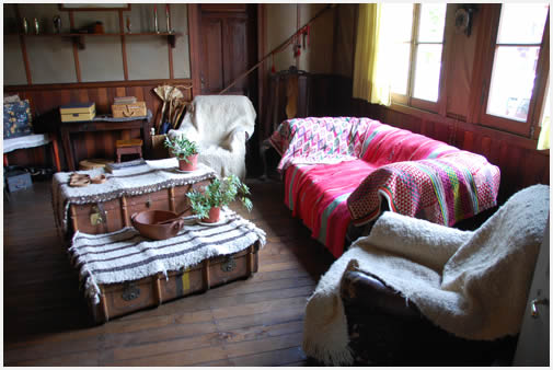 Voces acalladas por el paso del tiempo fueron tomando vida en el relato de Federico mientras recorríamos los distintos cuartos de la casa. Pisos de madera (crujientes) y paredes altas con imágenes fueron la caja de resonancia del paso de una familia que se adecuó a un San Martín de los Andes inhóspito.