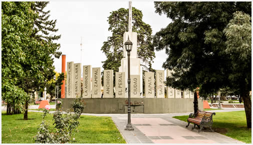 Una vez en la plaza, observamos una fuente de agua y la figura del general José de San Martín, venerado por todo el pueblo mendocino y, en especial, por aquellas regiones por donde hizo su paso.