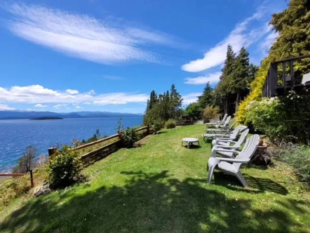 El predio dispone de un parque y jardín desde el cual se accede a la costa del lago luego de atravesar un bosque de arrayanes, frutales y especies autóctonas.