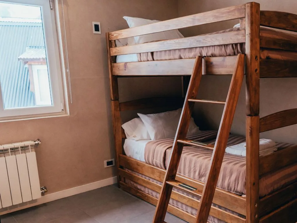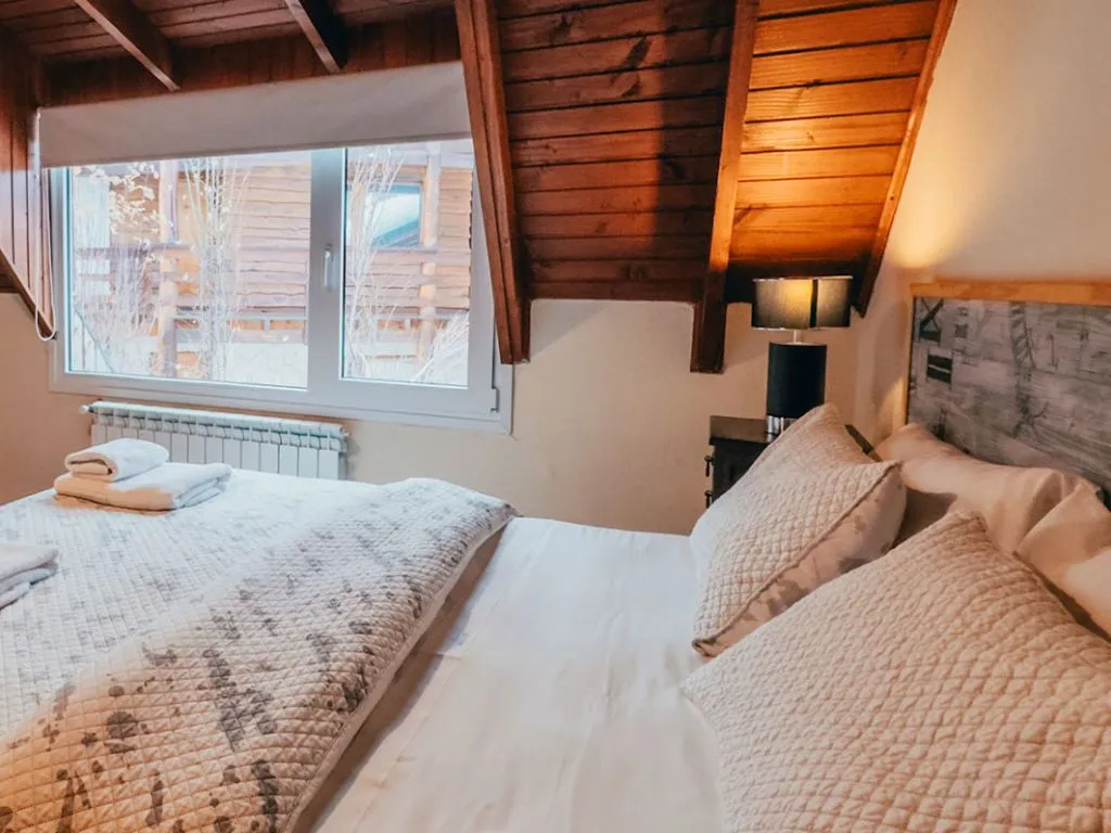 • SUITE (4 guests): 55 m² apartment with one bedroom, living room with sofa bed, dining area for four, 40” Smart TV, satellite TV, Wi-Fi, central heating, double glazing, and balcony with views of Cerro Catedral. Fully equipped kitchen.