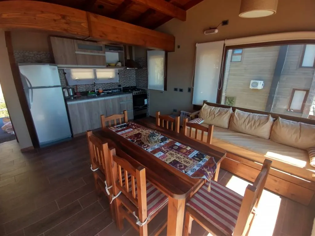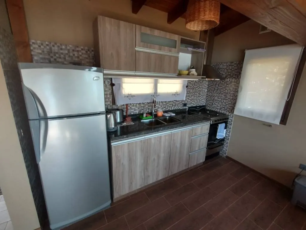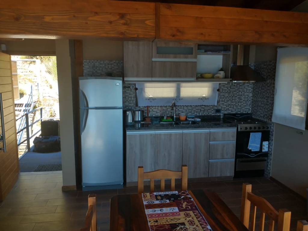 Cuentan con cocina completa, heladera con freezer, pava eléctrica, tostadora, microondas, lavarropas y secarropas (en cabaña grande). Calefacción con radiadores, Smart tv satelital, WiFi, asador con parrilla, disco y plancha.