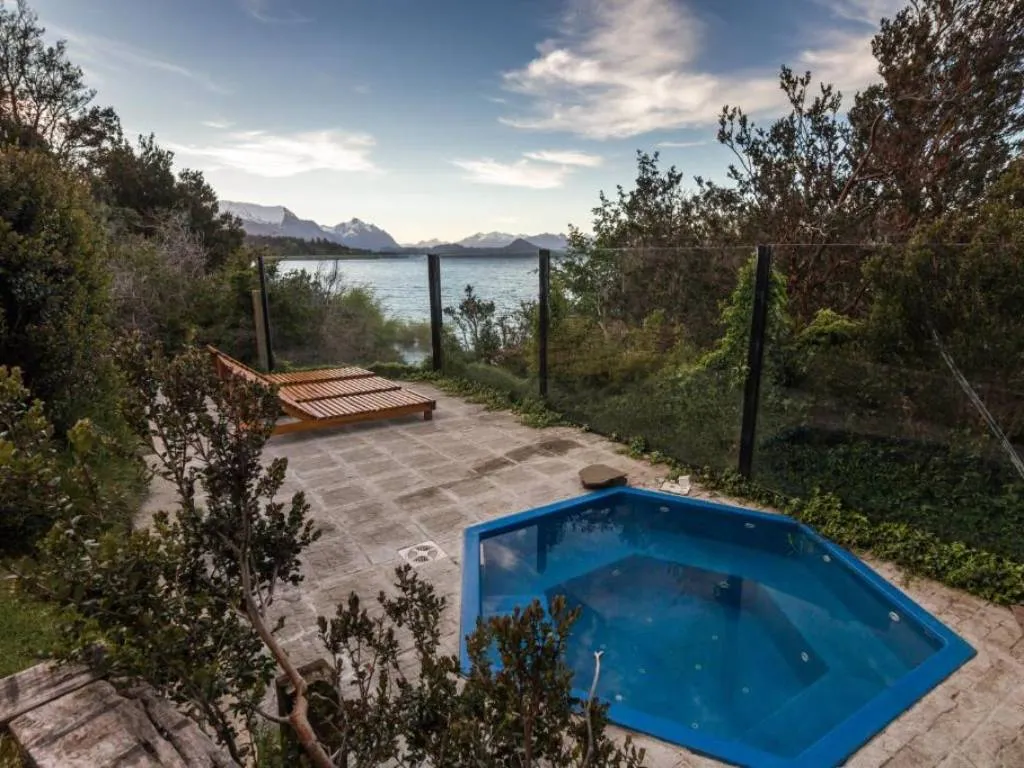 Highlighted amenities include direct access to the beach, on-site parking and a cozy barbecue pavilion equipped with grill and asador—perfect for enjoying shared moments with familyfriends. Guests can also enjoy a lakeside solarium with a heated jacuzzi, a relaxing spot ideal for admiring the landscape and unforgettable Patagonian sunsets.