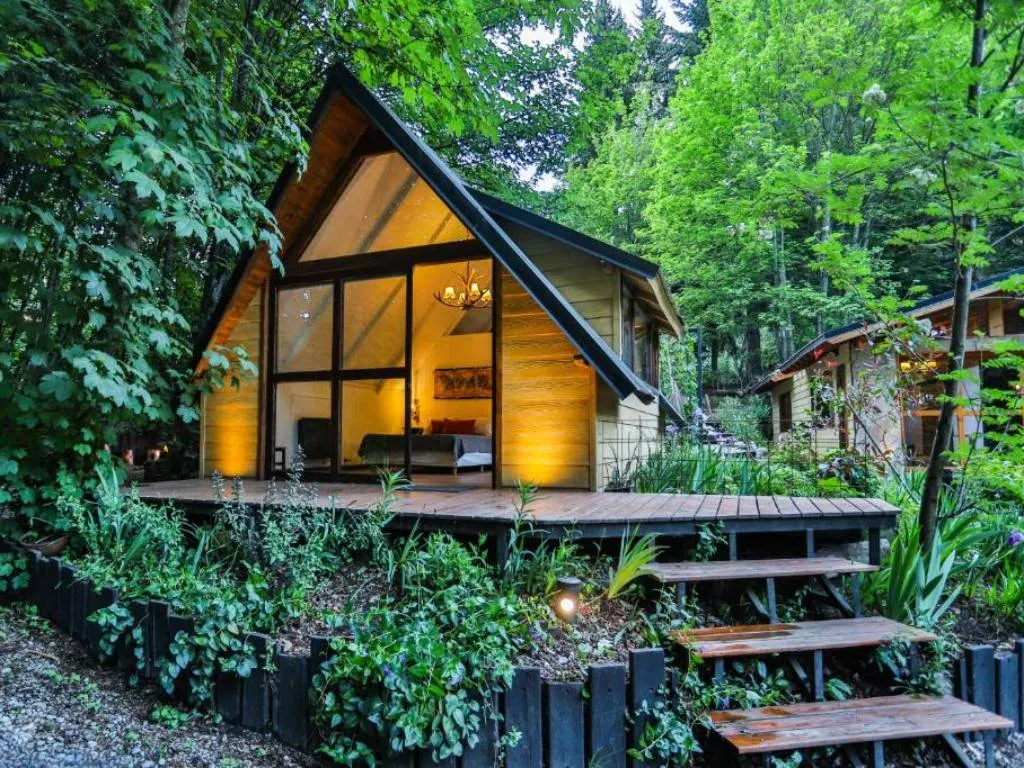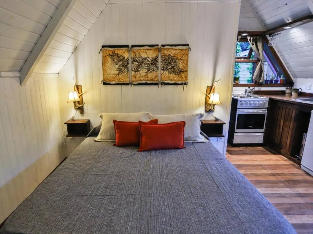 Ofrece cabañas independientes, alejadas entre si, cada una de ellas totalmente equipadas, disponen de cocina completa, comedor, cama matrimonial e individual , ropa de cama, toallas y baño privado.