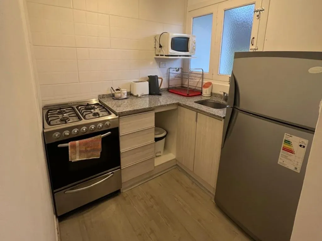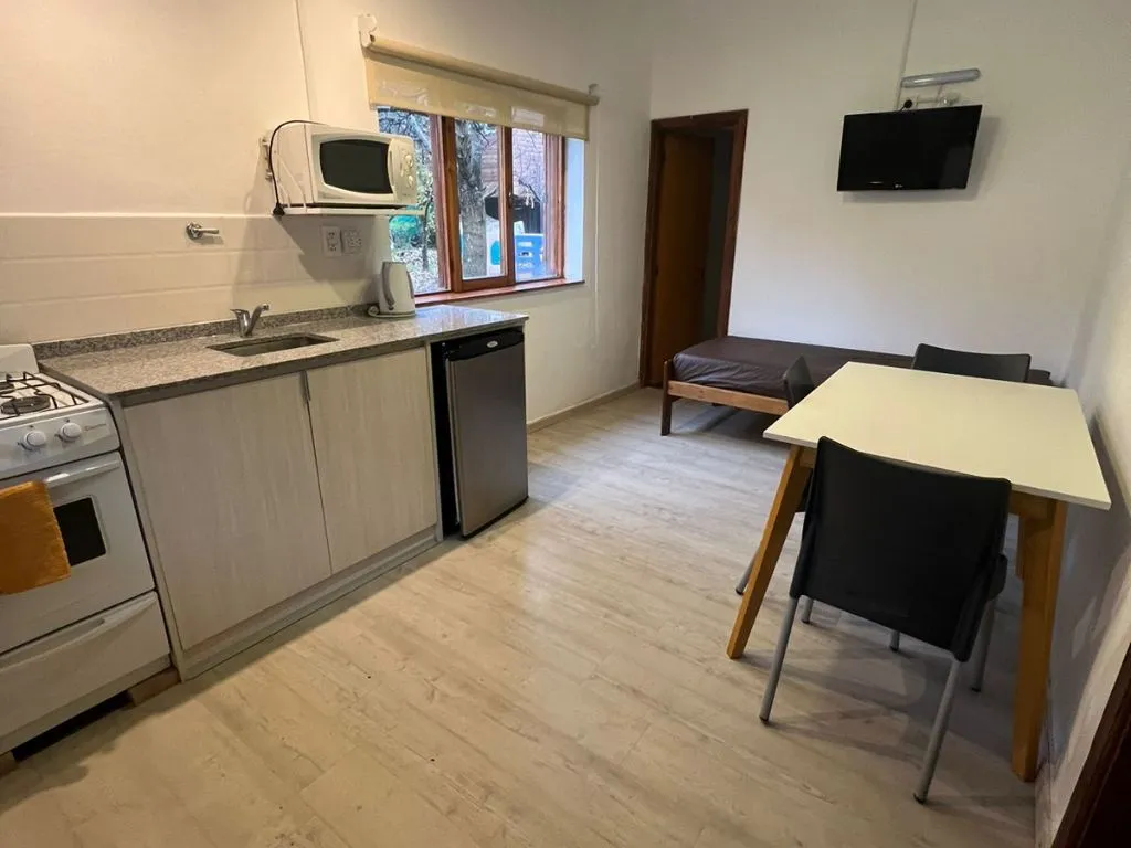 The apart units function as fully equipped apartments, ideal for guests seeking more independence during their stay in Bariloche. Each apartment includes a complete kitchen with fridge, microwave, stove, and kitchenware, as well as radiator heating and cable TV. Bed linen, towels, and cleaning service are provided, making it a practical apart hotel option in Bariloche.