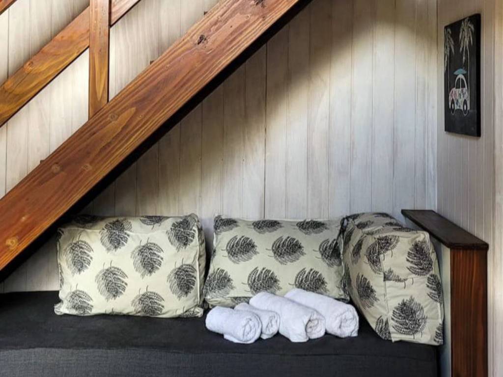 It has dishes, electric kettle, gas oven, electric coffee maker, microwave, towels, towels and linen, WiFi and heating. Safe and alarm. Deck with coffee table and chairs. 2-seater slatted base set on the upper part and a single bed on the ground floor.