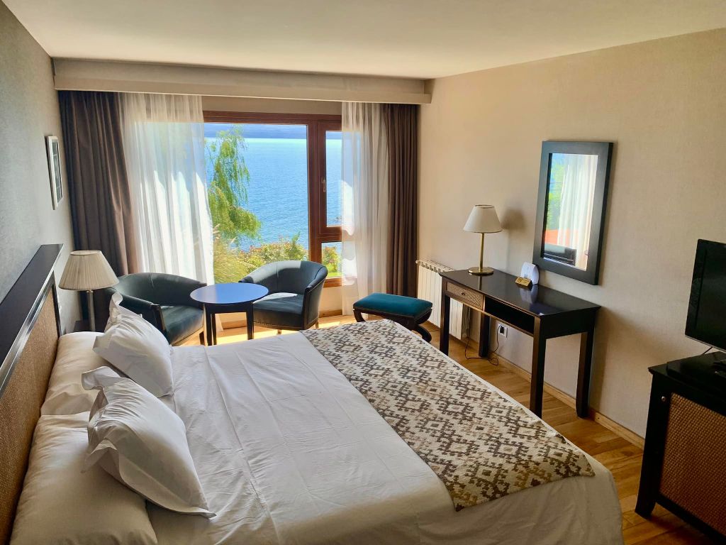 El hotel, emplazado en un entorno de ensueño, combina la elegancia y el estilo contemporáneo con la calidez y la tradición patagónica. Desde sus amplias habitaciones, decoradas con un gusto exquisito y equipadas con todas las comodidades, se puede disfrutar de vistas panorámicas imponentes del lago y las montañas nevadas.