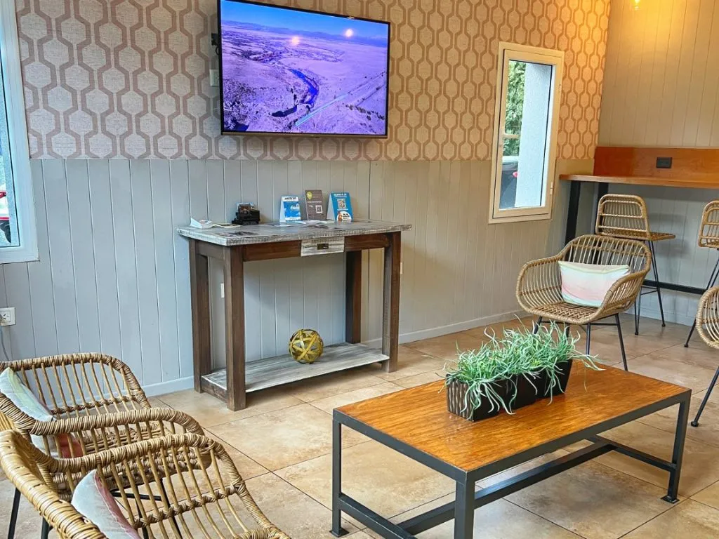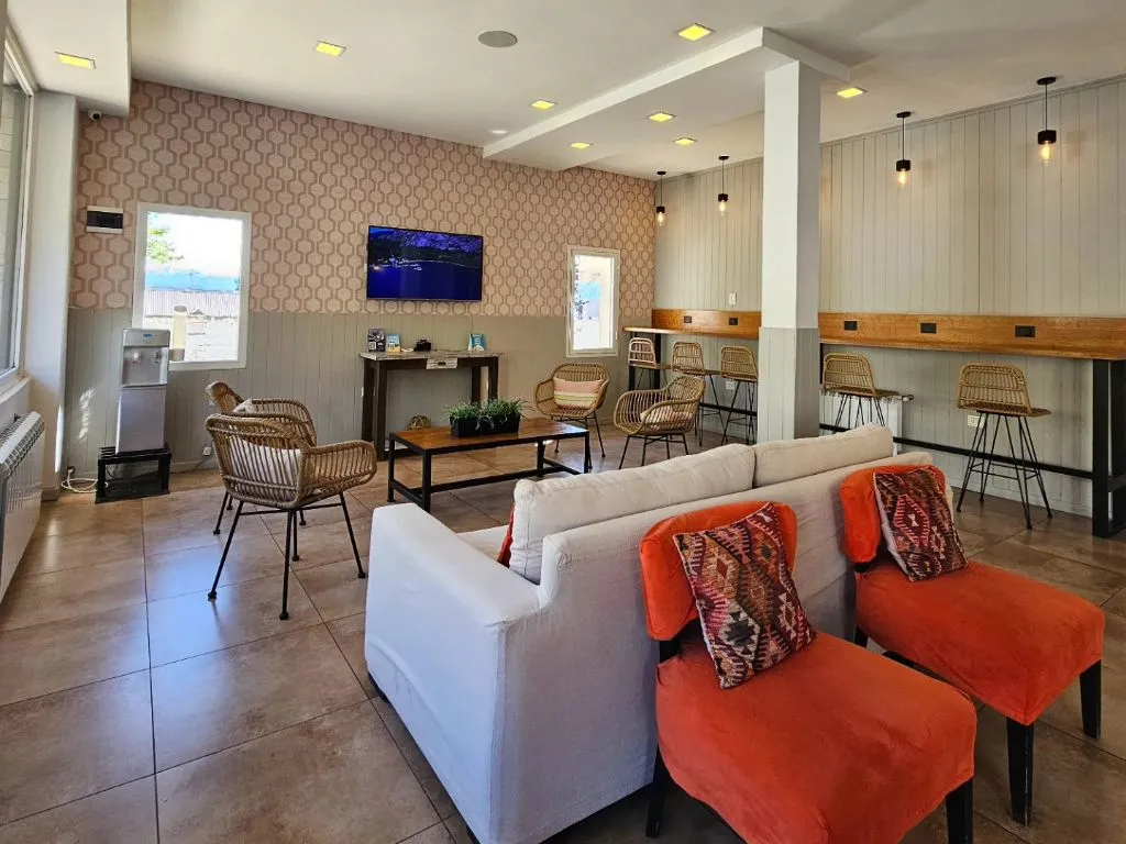 Otro de los beneficios de este hotel en Bariloche es su estacionamiento propio y sus espacios comunes, como el desayunador, la zona de estar y el patio exterior, que invitan a relajarse luego de una jornada de actividades. Su ubicación céntrica permite acceder fácilmente a sitios de interés como el Centro Cívico, la Catedral de Bariloche, la costanera del lago y excursiones hacia el Cerro Catedral, uno de los principales centros de esquí de Sudamérica.