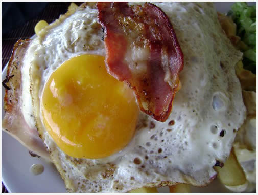 La receta es simple. Muy simple. Un filete de carne de lomo vacuno. Lechuga, tomate, jamón, queso, panceta y huevo. Todo en sándwich o al plato, como más le guste al comensal.