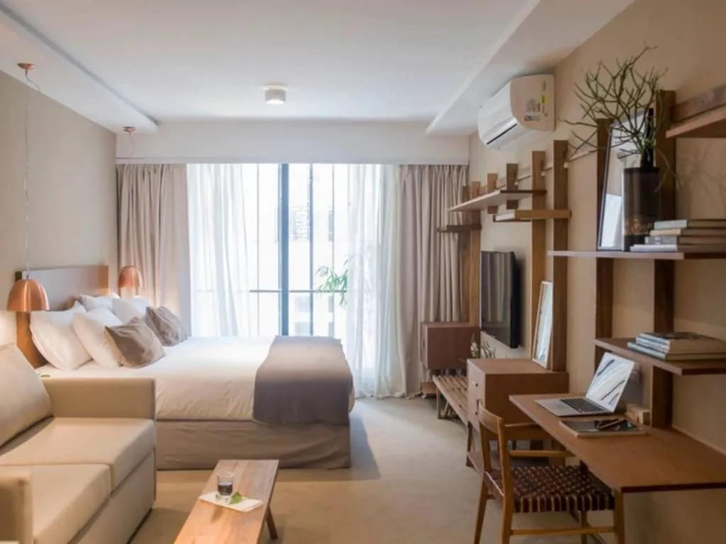 Spacious and bright design suites, fully equipped. They have an outdoor heated pool, massage room, gym, meeting room, design store, among others.