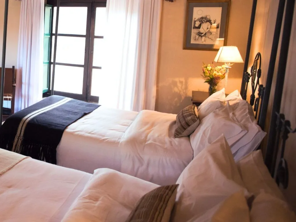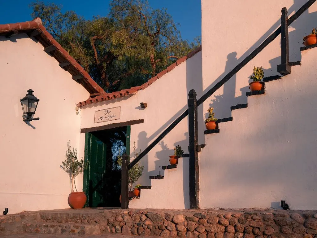 Desde el momento en que se entra en la Hacienda de Molinos, se siente como si se hubiera viajado en el tiempo. El patio del molle, los gruesos muros de adobe, las rejas de hierro y los techos de algarrobo y cañizo son detalles que transportan a la época colonial. Cada rincón del hotel respira historia, y el diseño arquitectónico mantiene la esencia de su pasado, lo que lo convierte en un lugar ideal para aquellos que buscan una experiencia cultural y relajante.