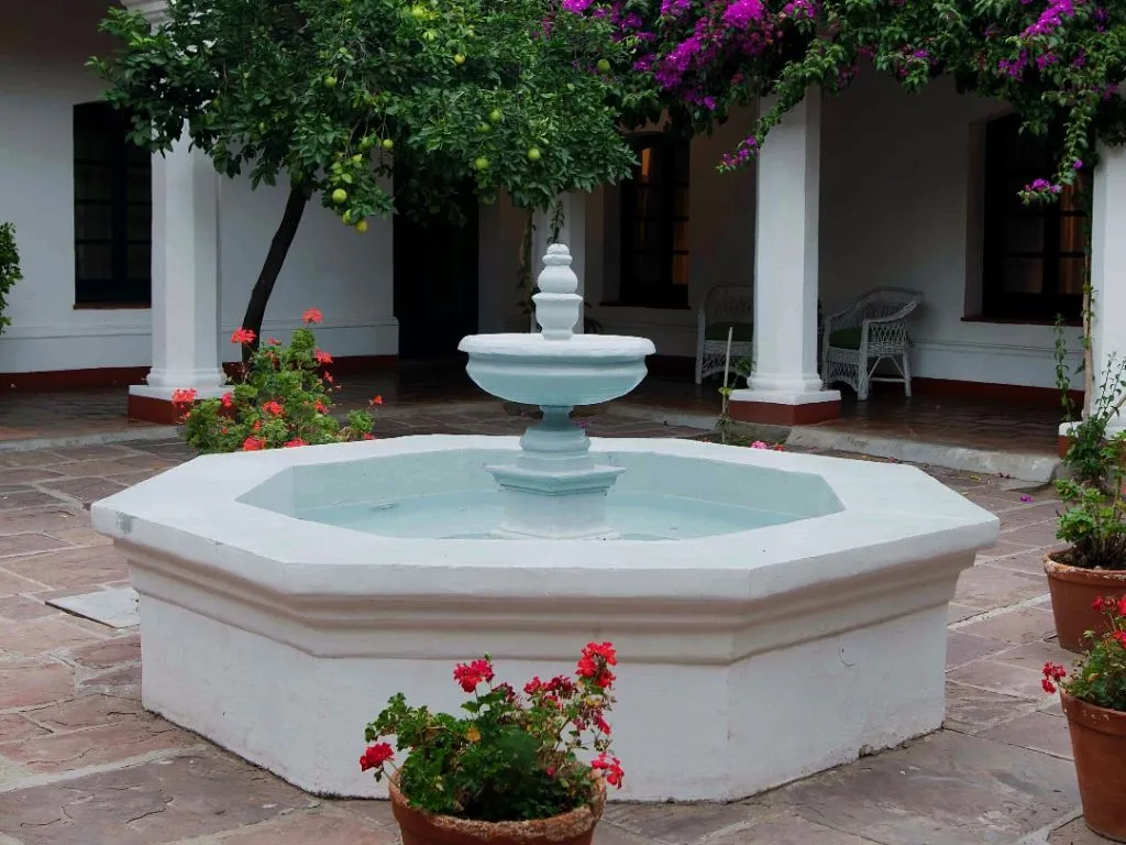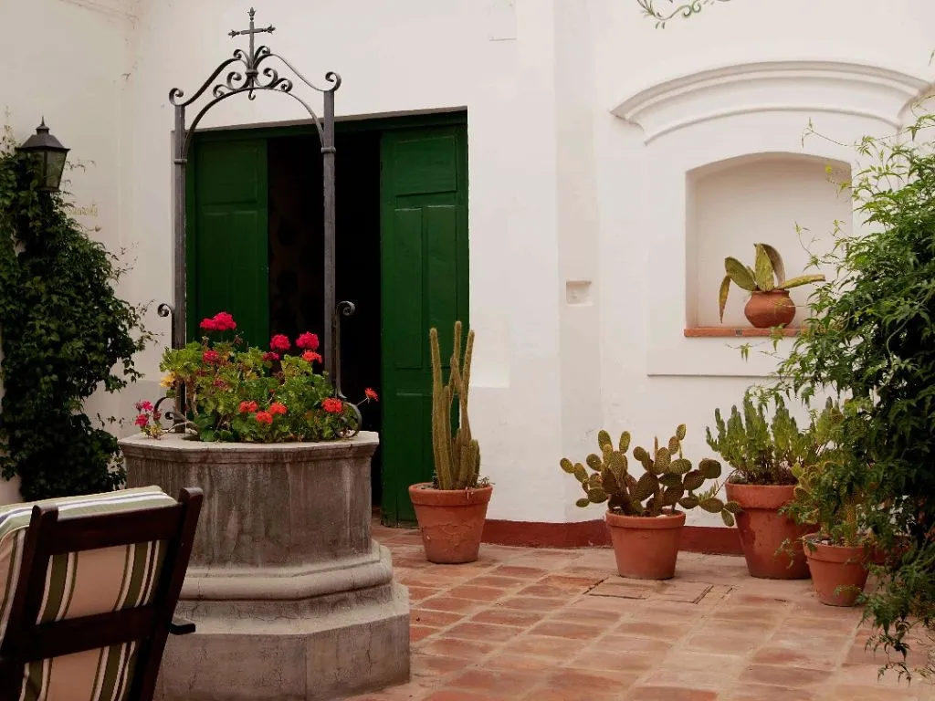 Within the colonial estate of Bodega El Esteco, the Patios de Cafayate hotel operates in a historic building dating back to the early seventeenth century. The hotel has 32 rooms and suites with views of the vineyards, mountains, and estate gardens. The architecture combines colonial elements with handwoven textiles, rustic furniture, and native silverwork ornaments. It is an accommodation option for those looking to stay at the wine-producing heart of Cafayate and the Calchaquí Valleys.