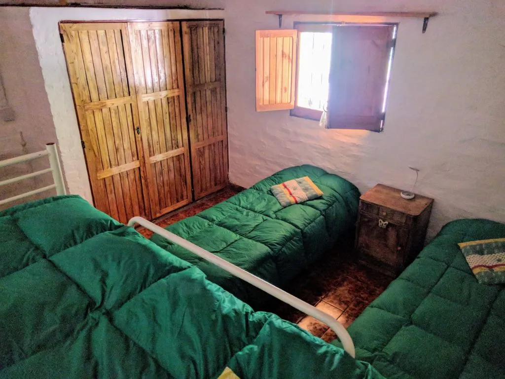 Estoy en una habitacion privada, muy cómodo el colchón! luminosa, limpia yalegre. El hostel está muy bien ubicado en una zona arbolada con vista soñada a la montaña. Acceso pavimentado pot una...