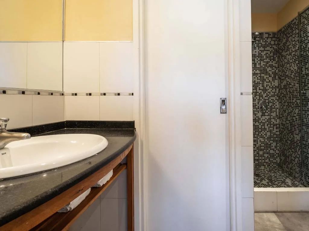 • On the upper floor, a spacious en-suite bedroom with a full bathroom, bathtub, closet, and two balconies ensures privacy and comfort.