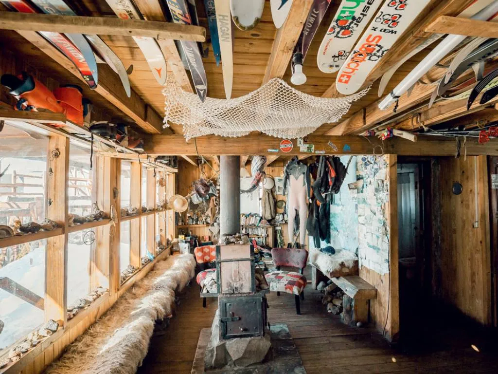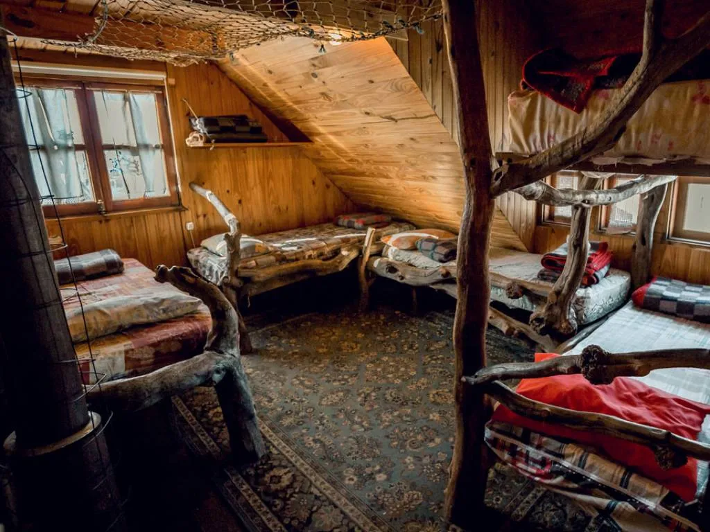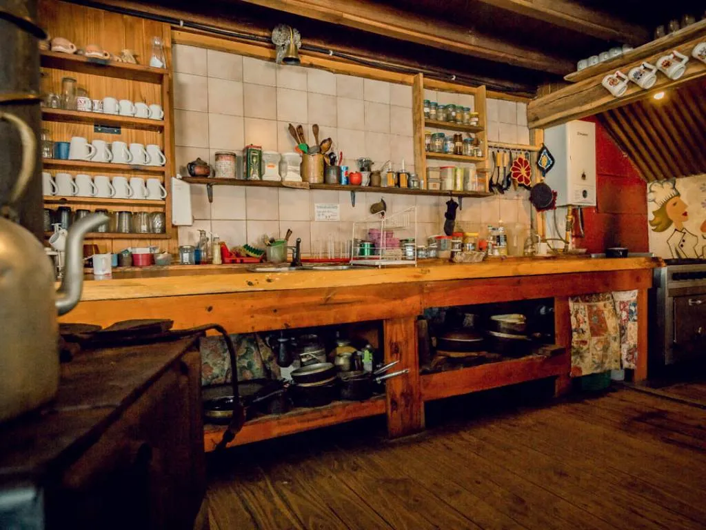 Tourist Hostel, totally built in wood. It has rooms with 5 individual beds of artisan design with local materials. Bathrooms with hot water 24 hours a day. Availability to cook, shared common spaces, external grill. It offers bed and warm clothes for those who do not have a sleeping bag.
