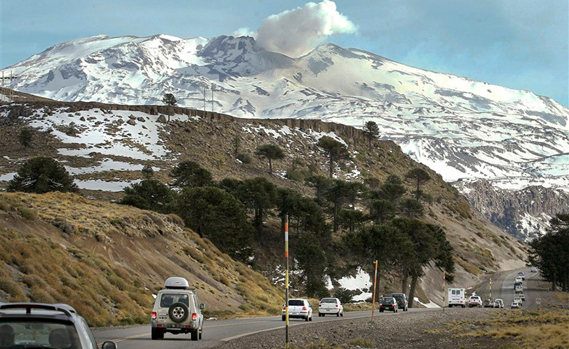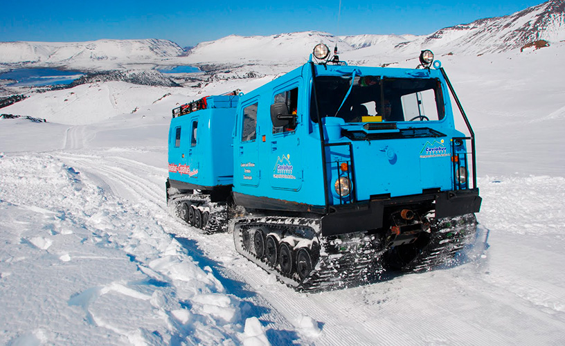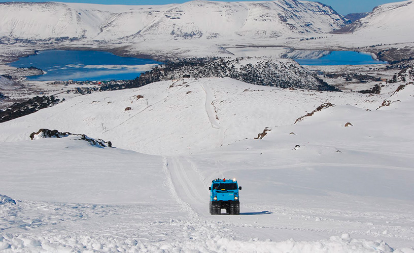 While at the base, we noticed the presence of a caterpillar vehicle specially conditioned to carry passengers comfortably settled on board. This vehicle goes along the Copahue Volcano slope and reaches 800 meters of height between the winter resort level and the crater, thanks to its very strong and resistant traction system.