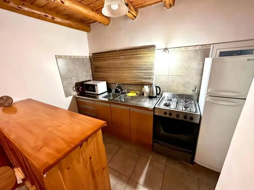 The cabin features a fully equipped kitchen, allowing guests to prepare their own meals during their stay. It also includes two bathrooms, heating for the winter season, Wifi connection, and DirecTV service, ensuring comfort throughout the year. Free on-site parking is available, making it convenient for travelers arriving by car.