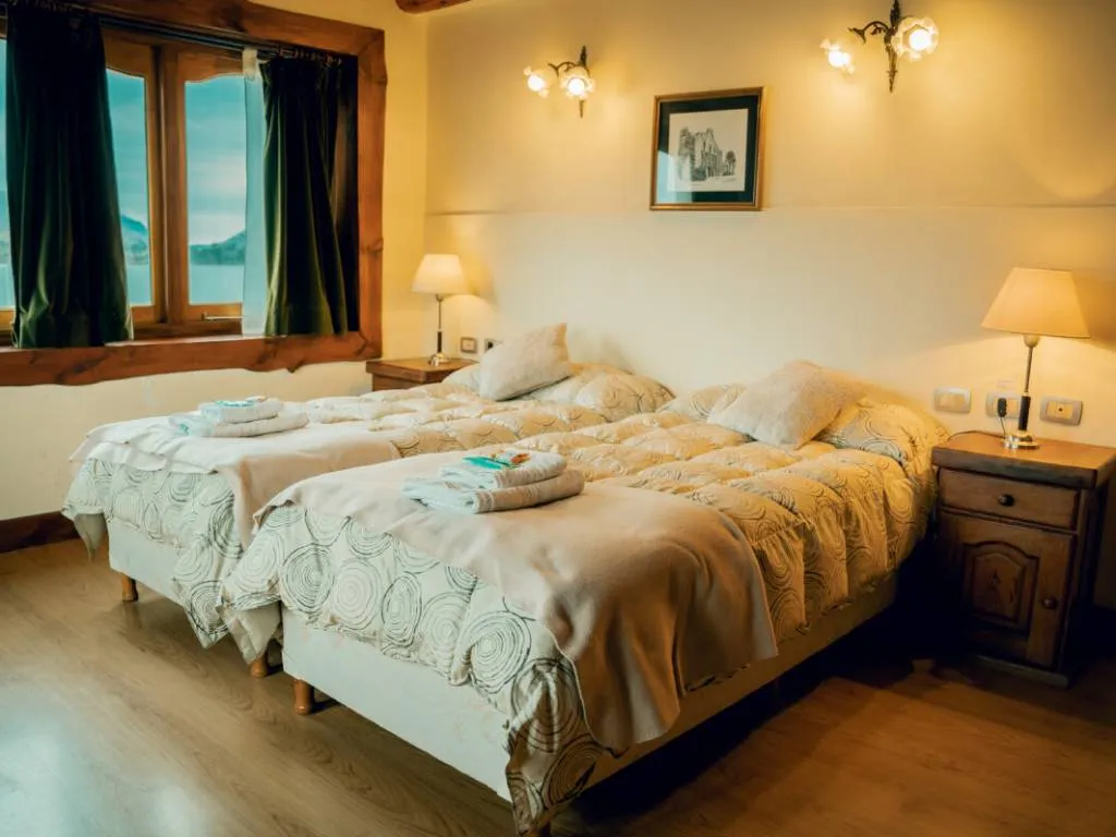 - Habitaciones y espacios comunes con vistas al lago
