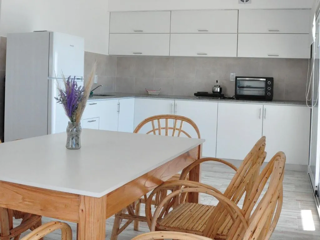 Las cabañas para 6 personas están construidas en seco, con excelente aislación térmica y cuentan con muelle exclusivo de madera y salida directa a la Laguna Vitel. Disponen de dos dormitorios, baño privado, cocina completa, heladera, mesa y sillas, parrilla, aire acondicionado frío/calor, TV LED, Wi-Fi libre y termotanque solar, lo que permite una estadía confortable durante todo el año en Chascomús.