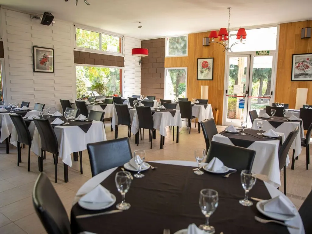 Restaurante La Grulla operates as an independent dining option, welcoming both guests and the general public. Its menu combines traditional Argentine cuisine, including grilled meats and empanadas, with Japanese preparations such as sushi and sashimi. The restaurant offers wifi for diners and provides a relaxed setting within the wooded grounds.