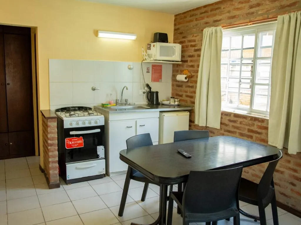 Para familias o grupos pequeños, el departamento para 4 personas brinda una distribución funcional, con dormitorio privado y una cama marinera en el área de cocina-comedor. La unidad está equipada con cocina completa, baño con amenities, Wi-Fi, TV por cable y desayuno seco incluido, ofreciendo el confort necesario para una estadía relajada en la ciudad.