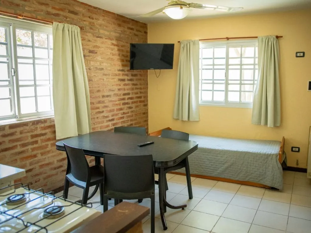 Los departamentos para 2 personas están diseñados para estadías de a dos, con cocina-comedor completamente equipada, dormitorio privado, baño completo y conexión Wi-Fi. Incluyen ropa blanca, toallas y TV por cable, además de desayuno seco todas las mañanas, lo que los convierte en una opción práctica y cómoda para disfrutar de Chascomús con total independencia.