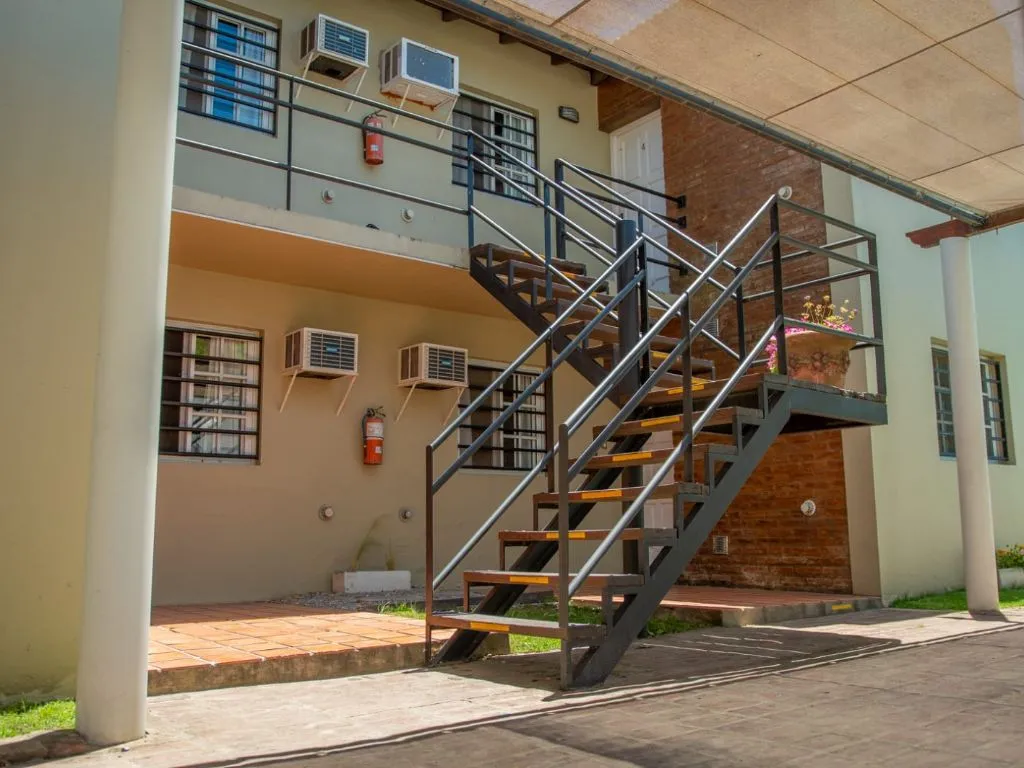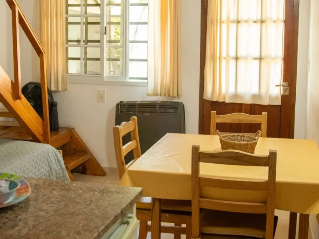 Los dúplex para 2 personas se desarrollan en dos plantas y ofrecen mayor amplitud. En la planta baja cuentan con cocina-comedor equipada y baño completo, mientras que en la planta alta se encuentra el dormitorio. Un detalle distintivo es el balcón con vista a la piscina climatizada. Estas unidades también incluyen Wi-Fi, TV por cable y desayuno seco, siendo una alternativa ideal para quienes buscan un apart en Chascomús con espacios bien diferenciados.