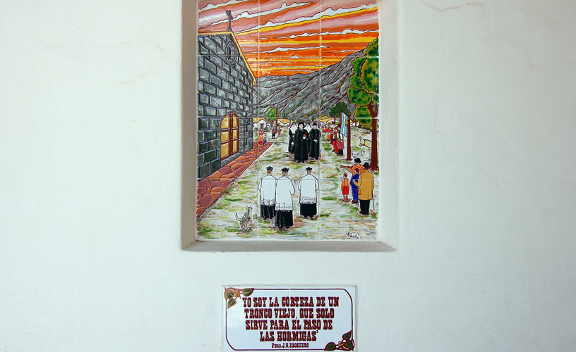Very close to the square, on Moreno Street, we visited the humble house once dwelled by Father Brochero during his last days. The place preserves its original design; in fact, the ceiling clearly displays the timber framing and the typical bricks used back in the nineteenth century. The property used to belong to Mr. Aguirre, husband of Father Brochero’s sister.