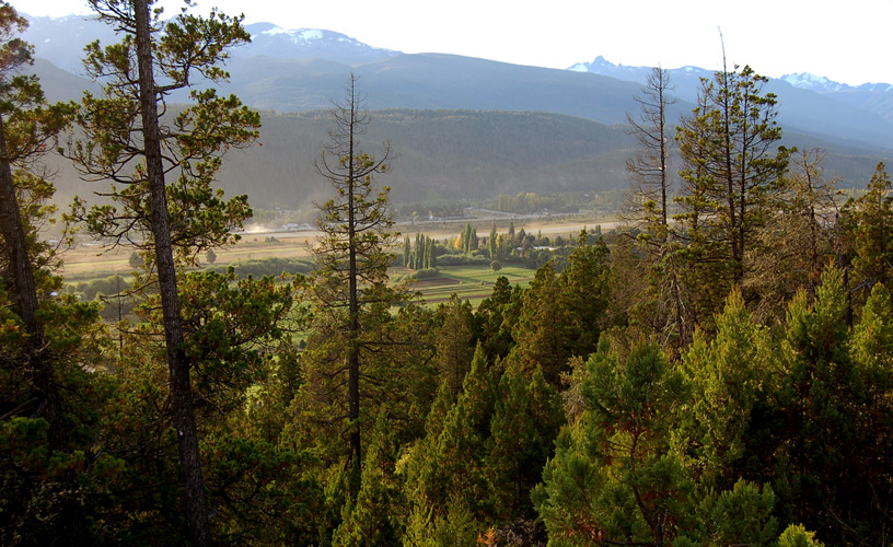 En este punto, hay que respirar hondo para inhalar el aire puro de la montaña y extasiarse con una increíble vista de todo el pueblo, del valle, la cordillera y el cerro Piltriquitrón, además de apreciar las plantaciones de lúpulo que caracterizan a la región.