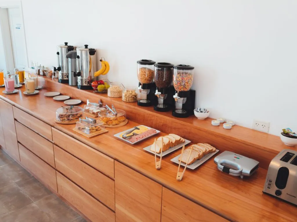 All units feature a private bathroom with personal care amenities, Smart TV, free WiFi, minibar, safe box, universal power outlets, hair dryer, heating, and a complimentary daily housekeeping service. Free uncovered private parking is also available for guests. The buffet breakfast is included in the room rate and starts at 6:30 am, a practical schedule that aligns with the early departure times of most excursions available in the area.