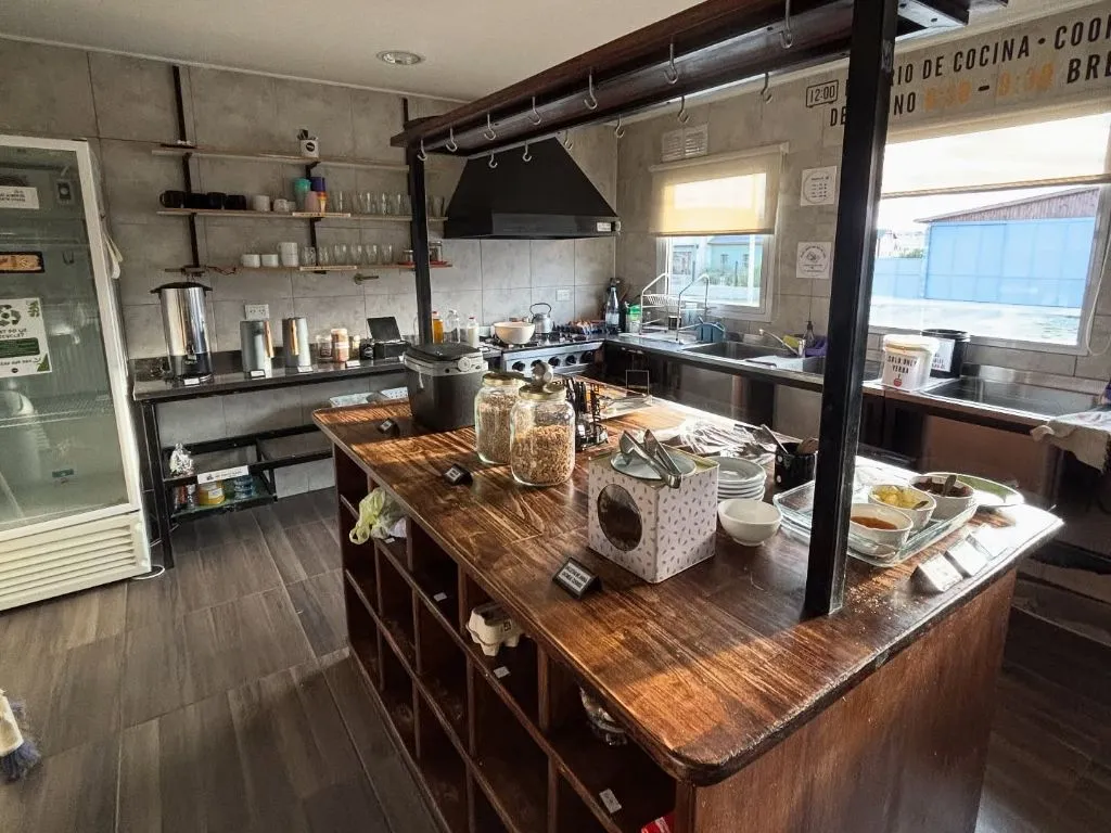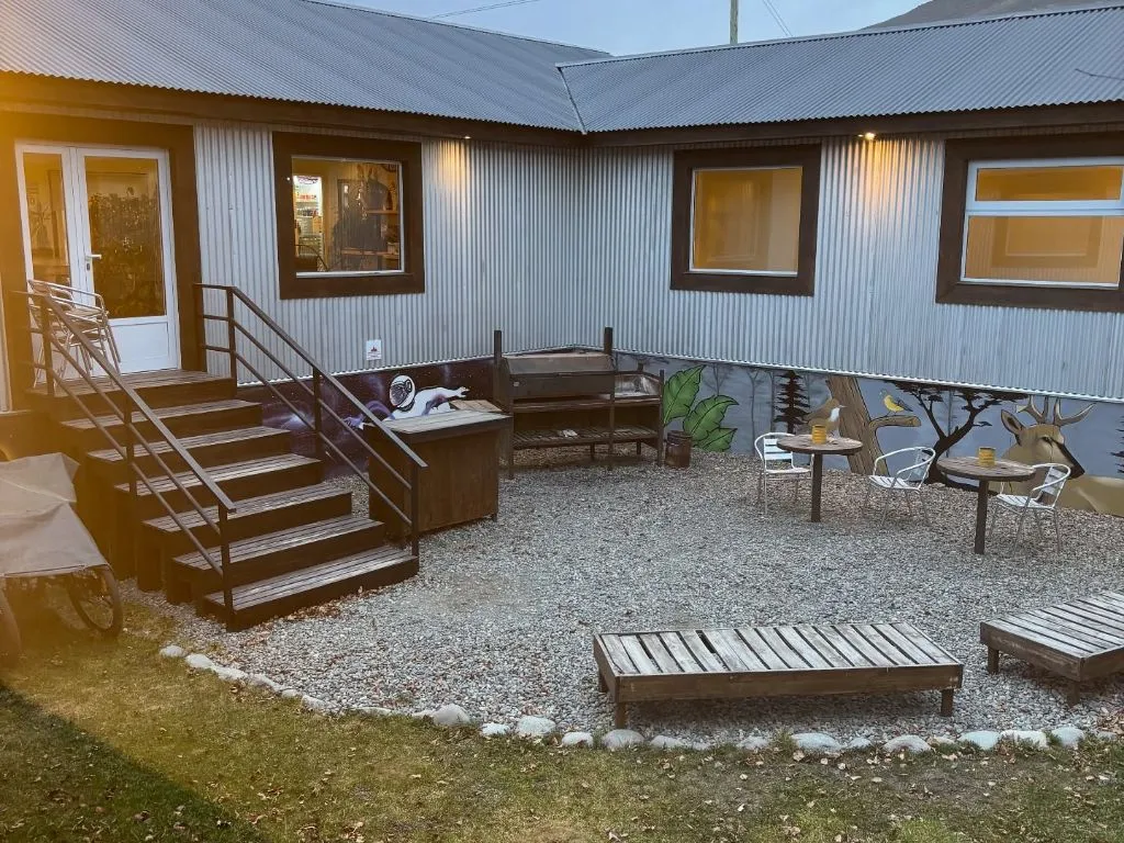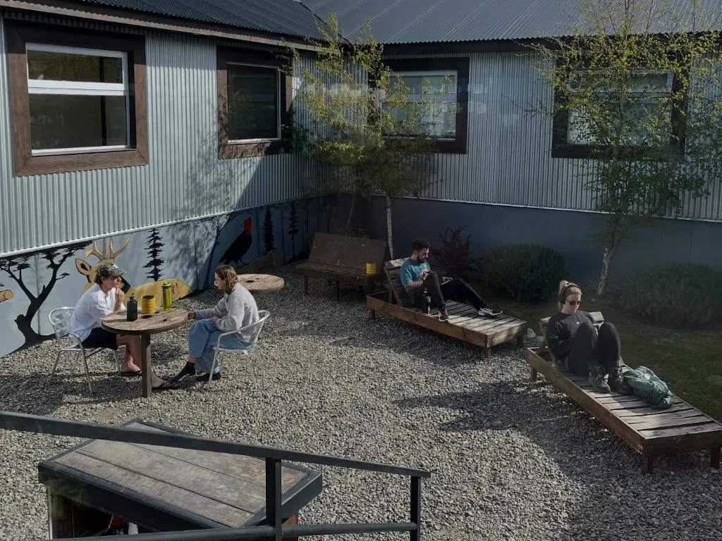 Common areas include a communal kitchen, open from 12:00 to 23:00, fully equipped and spacious, with a free food station, food storage and labeling supplies, and separated waste bins for recycling and reuse. The internal courtyard, sheltered from the wind and landscaped with native Patagonian species, is an ideal spot for relaxing, readinggrilling. The hostel also maintains an organic waste composting system. Each morning, a homemade, nutritious and varied breakfast is served.