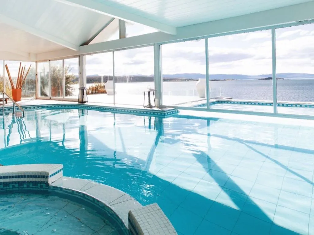 The hotel features a SPA & Health Club, a wellness-focused space with a 70 m² indoor/outdoor heated pool, jacuzzi, dry sauna, and relaxation areas, all overlooking Lago Argentino. Water temperature is kept between 28 and 32 °C, and access is available from 12:00 to 22:00 hs, exclusively for hotel guests. Massages, treatments, and aromatic therapies are also available by appointment. The Health Club, located on the first floor, includes a gym and bar service.
