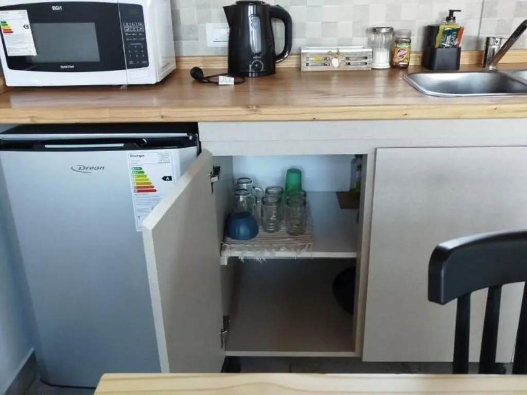 Each unit includes everything needed for an independent and comfortable stay. The fully equipped kitchen allows guests to prepare their own meals, a practical advantage in a tourist destination El Calafate where self-sufficiency adds real value to the experience. Heating is especially important given the Patagonian climate, with cold nights throughout much of the year.