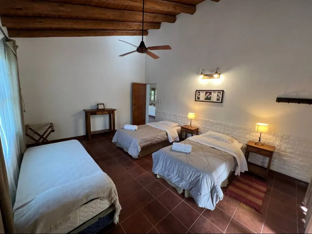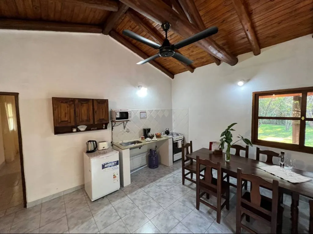 They have top quality linens, hair dryer, amenities (shampoo, conditioner and soap), king size mattresses and one and a half bed mattresses for children. Kitchen equipment (kitchen with gas oven, refrigerator, dishes, microwave, electric kettle, electric coffee maker, electric toaster, coffee, sugar and infusions), electric stoves, air conditioning and ceiling fans in all rooms, daily cleaning service , and WiFi (rural connection as throughout the Colony, for this reason the connection may not be stable).
