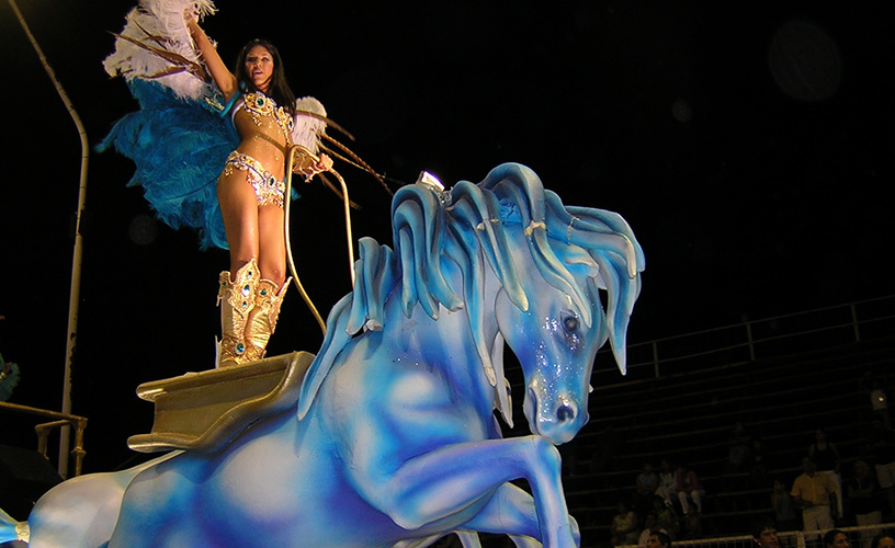 Every Saturday in January and February, the local Corsódromo (located on the corner of Piccini and Ayacucho Streets) awaits for the show to be displayed on its red carpet. Inaugurated on January 18, 1997, this is the first of its kind in the country. It is five hundred meters long and its runway is ten meters wide. This space has all the necessary facilities to seat thirty-eight thousand viewers on grandstands divided into two-hundred-meter sections, boxes with four rows of seats, as well as a VIP sector, with terraced grandstands.
