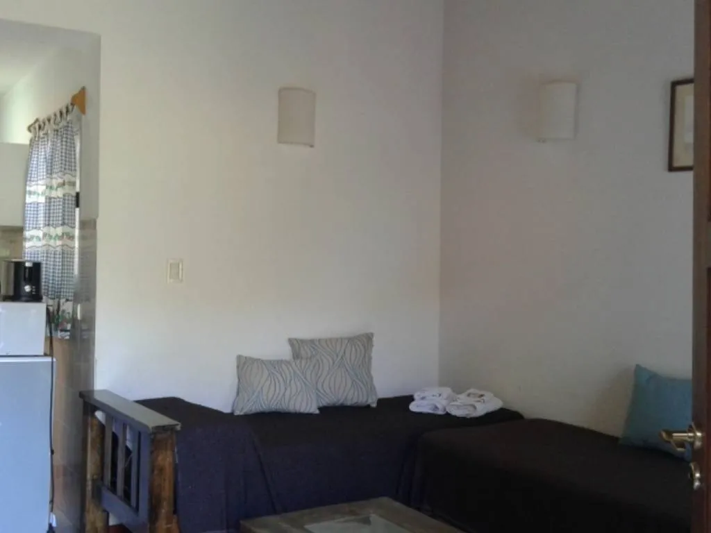 Ofrecemos cabañas adosadas de 45 metros cuadrados, cada una, con baño, dormitorio matrimonial, estar comedor con dos camas individuales, cocina completa y asador individual, donde pueden alojarse cómodamente hasta cuatro adultos, o cuatro adultos y un niño.