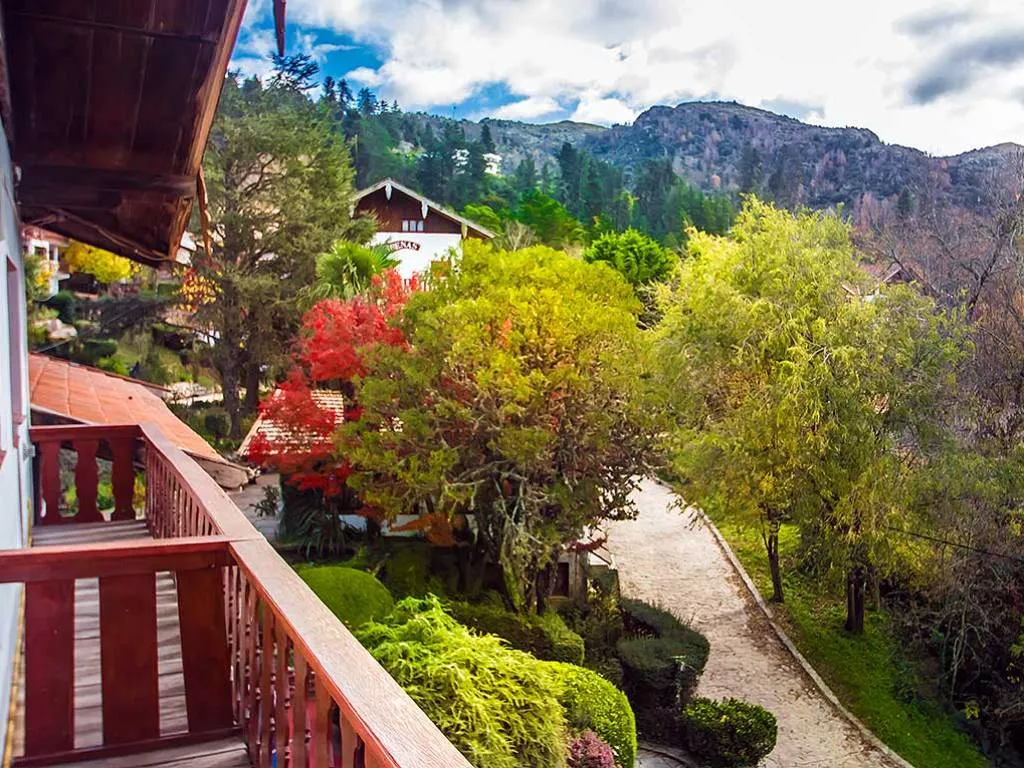 Este hotel ofrece excelente ubicación dentro del pueblo peatonal , precios muy accesibles con desayuno incluido, se dice que es un hotel de mas de 100años muy hermoso con piscina y grandes jardines,cancha de tenis ,cuenta con un amplio comedor, heladera y microondas por si quieres traer tu vianda y comer alli. No te preocupes porque no tenga ni aire acondicionado,ni ventilador...no lo necesitarás, el clima es perfecto y Esta a pocos minutos de paseos y de paisajes sacados de un libro de cuentos.