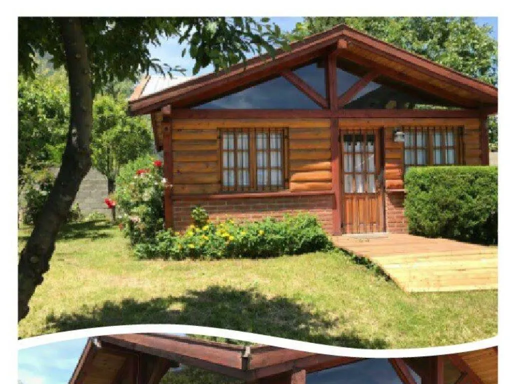 The cabin for 3 guests has a bedroom with a double bed, a living room with a single sofa bed, a fully equipped kitchen, cable TV, a park with trees and sun, and a grill. The cabin is located in a quiet and natural environment, just 4 blocks from the center and 6 from the main square.