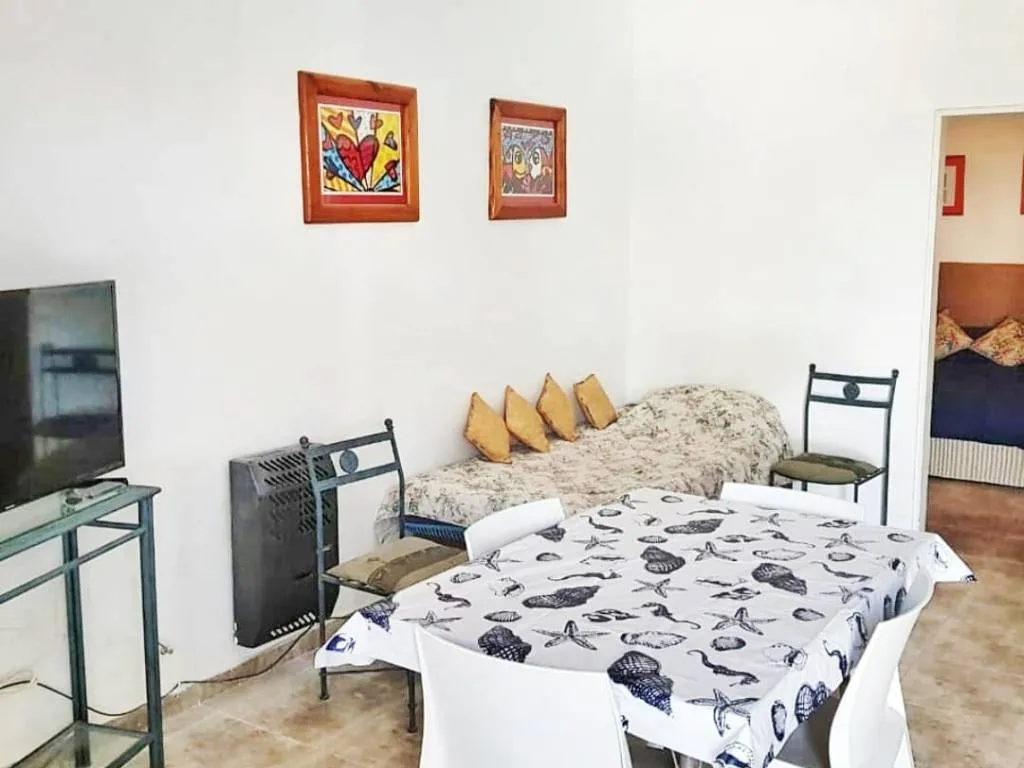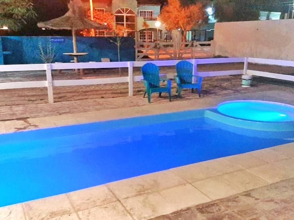Cuenta con pileta con hidromasaje, parrilla independiente de cada depto, cocina full equipada (microondas, cafetera, heladera), WiFi, Smart TV LED con cable, ropa blanca, cocheras con techo para sol, cancha de mini tejo, cancha de fútbol- tenis.