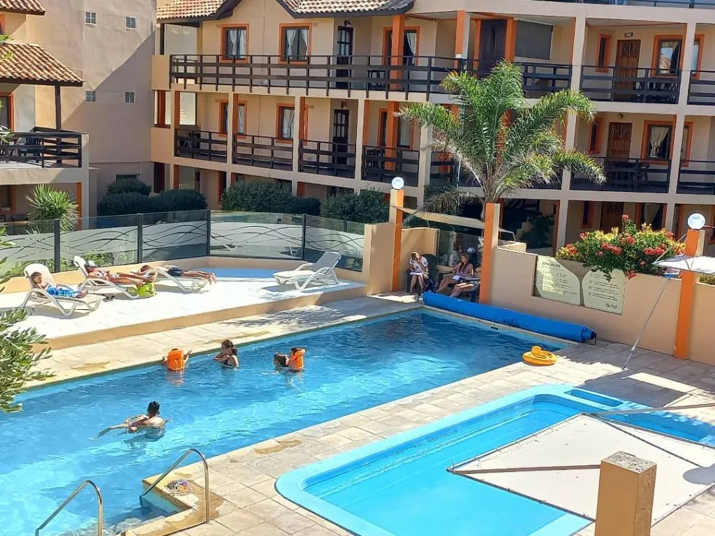 Entre los servicios destacados se incluyen servicio de mucama, ropa blanca, conexión Wi-Fi, solárium, piscina climatizada al aire libre (26° a 28°), pileta climatizada cubierta y jacuzzi (ambos con costo adicional). Además, el complejo ofrece juegos de plaza para niños, reposeras de playa, biblioteca, sala de juegos con pool, ping-pong y metegol, mini gimnasio, bicicletas de spinning y kits para bebés. También cuenta con estacionamiento cubierto dentro del predio (sujeto a disponibilidad y costo adicional) y acepta mascotas pequeñas, exclusivamente caninos.