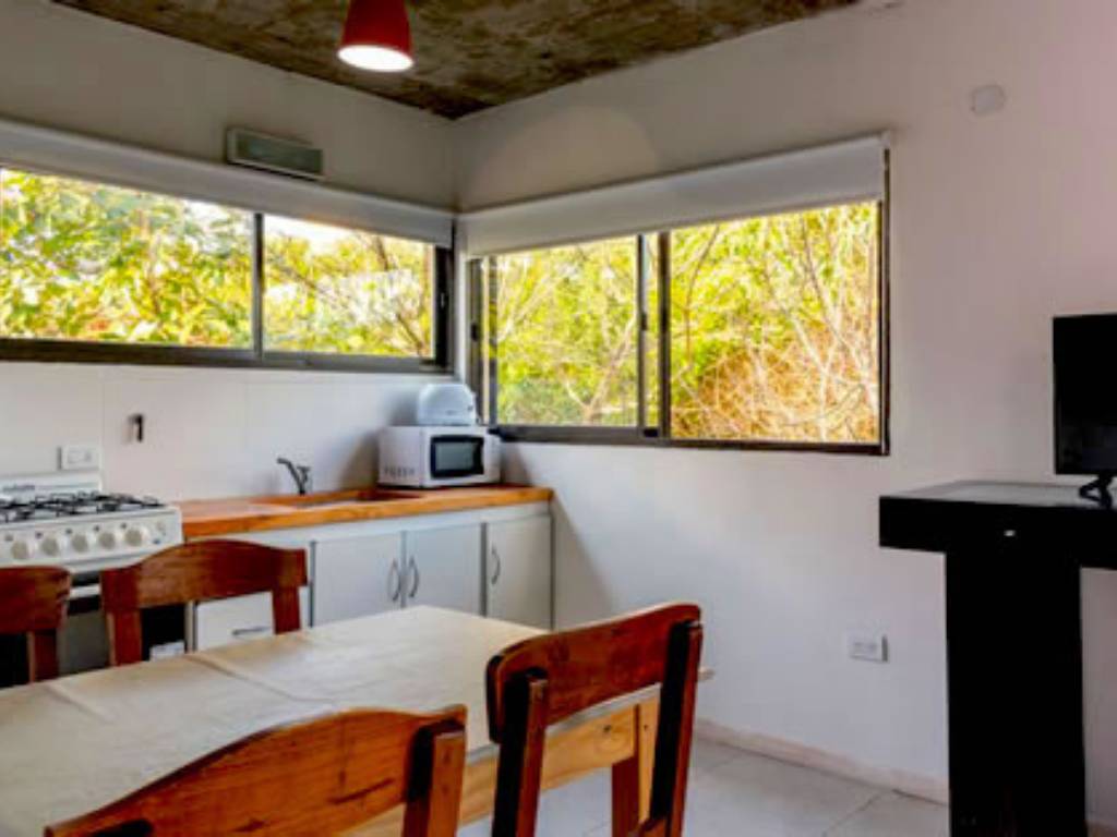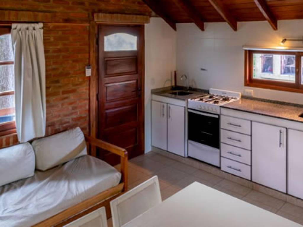 - Una casa para 4 personas, en planta baja, con dormitorio principal, living con 2 camas, cocina comedor, baño y parrilla cubierta.