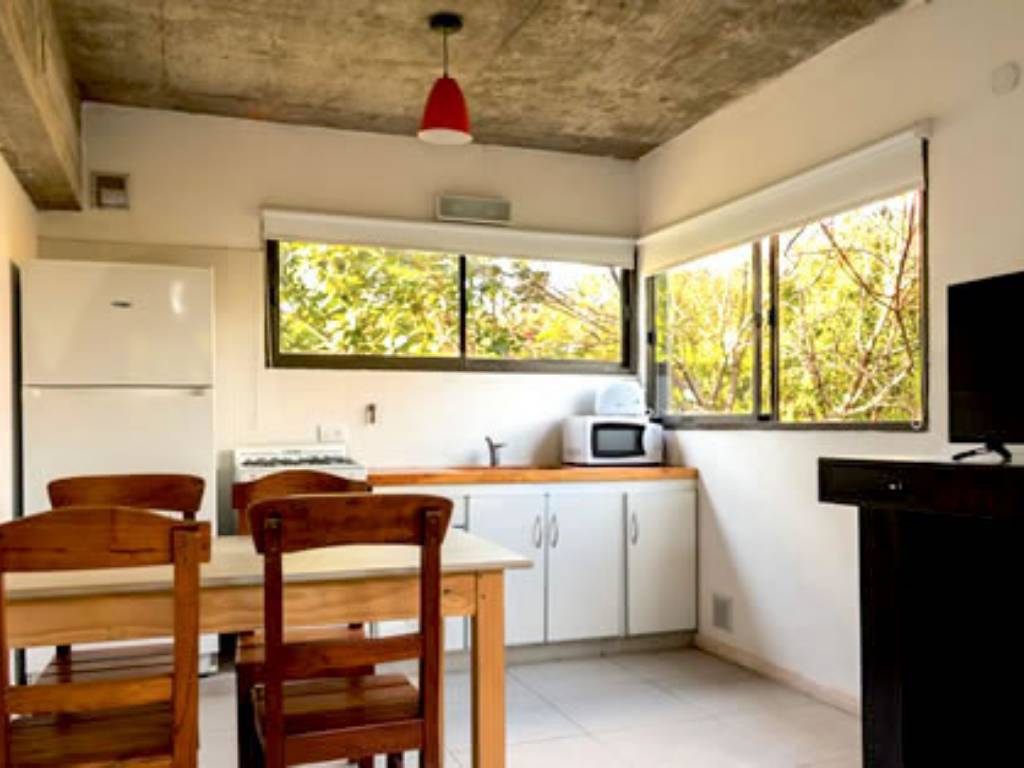 - Y una casa para hasta 4 personas en planta alta, al contrafrente, con living, cocina comedor, terraza con parrilla, dormitorio principal con balcón, segundo dormitorio con 2 camas y baño con ducha.