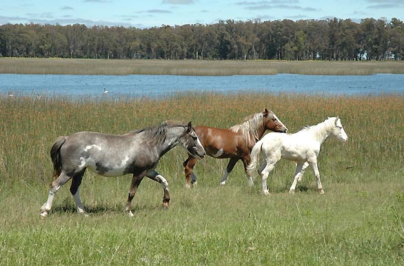 Laguna y caballos, ruta 2 camino a Mar del Plata