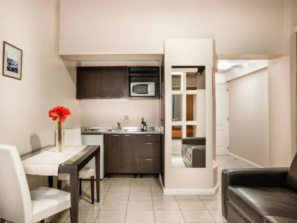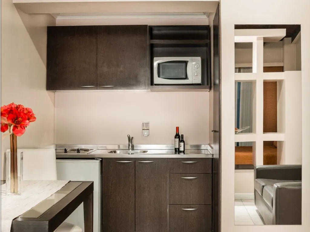 • Suite Executive: un monoambiente de 100 m² con cama King size, living comedor, despacho para reuniones, cocina completa y baño.