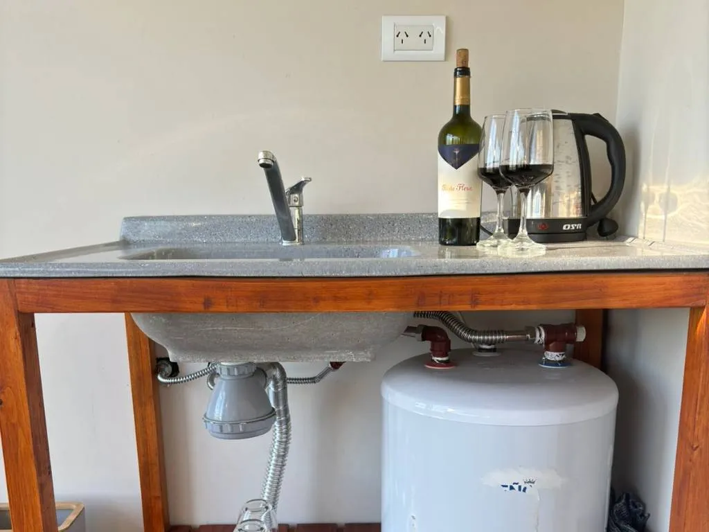 Las cabañas, de diseño rústico y acogedor, están completamente equipadas para una estadía confortable y memorable. Con capacidad para dos personas, cuentan con ropa de cama, aire acondicionado y vajilla, asegurando que cada detalle esté pensado para el máximo confort de sus visitantes.