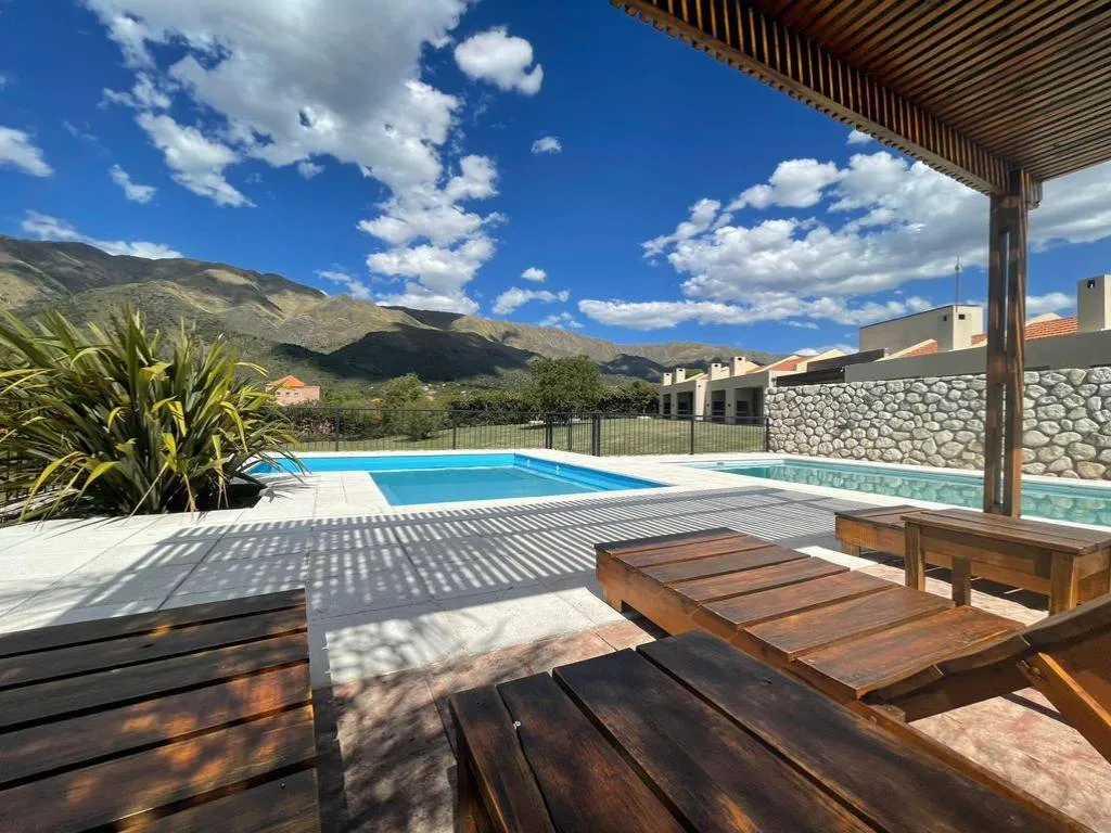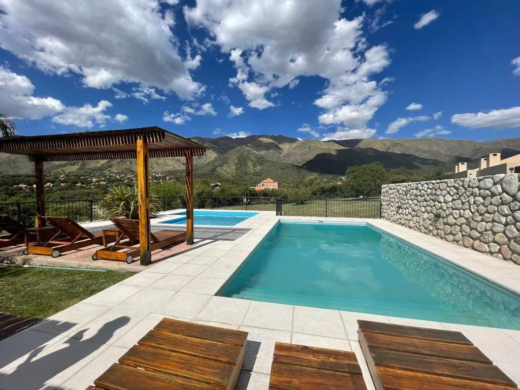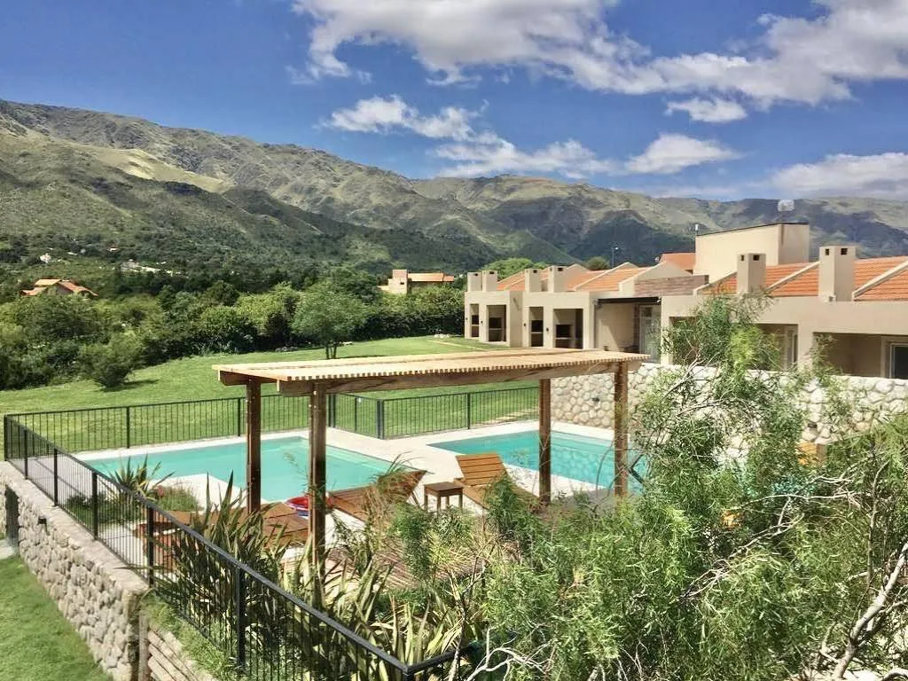 Además brinda 2 Piscinas con vista a las sierras, solárium con reposeras y mesas, asador individual, mesa y sillas de exterior, estacionamiento semicubierto.
