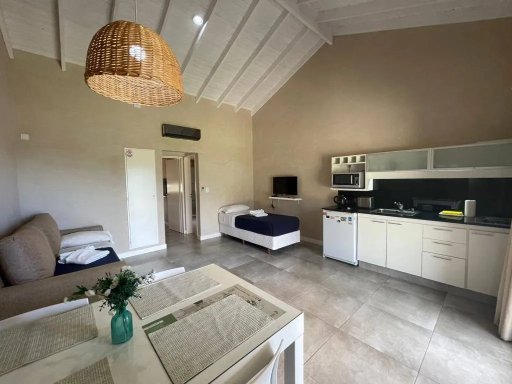 Apart con capacidad para 2, 3 y 4 personas, equipadas con heladera, microondas, jarra eléctrica, tostadora, 2 hornallas eléctricas, vajilla para 4 personas, 2 TV LED con DIRECTV (uno en el living y otro en el dormitorio), living con sillón cama con carrito, habitación con cama matrimonial somier de 1ra marca, baño totalmente equipad con ducha, secador de pelo, ropa de cama, toallas.