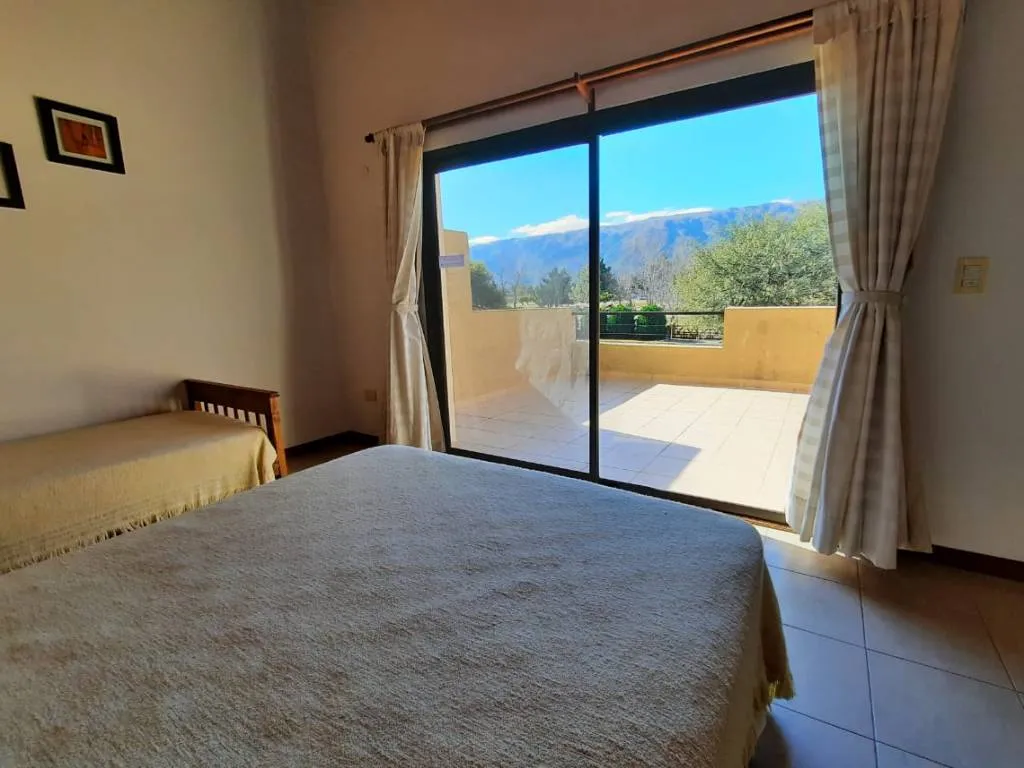 They are equipped for the comfort of up to 6 people. They have two bedrooms, the main one is located on the upper floor and has a large window with a terrace balcony facing the imposing landscape of the Comechingones mountains.