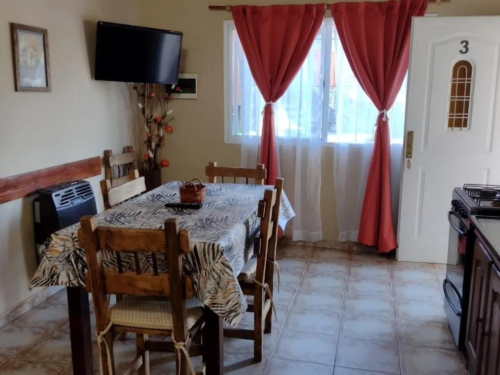 Complejo pequeño, tiene 5 cabañas, es un ambiente familiar y tiene la opcion de ser un lugar ideal para parejas. Tiene una pileta grande, un quincho con parrilla equipado, y un lugar tipo camping con parrilla. Atendido por sus dueños, son super atentos y agradables. Se puede ir al centro caminando tranquilamente Muy recomendable