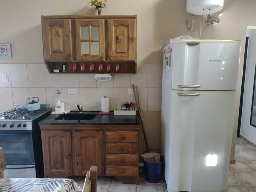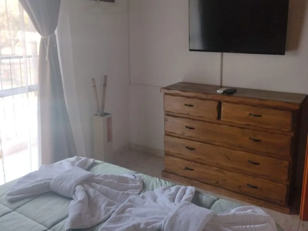 • Monoambiente para 2 personas: somier de dos plazas, baño completo, televisor, aire acondicionado, wifi, ropa blanca y kitchenette con microondas, pava eléctrica, vajilla y frigobar. No dispone de cocina con hornallas. Accede a parrilla, quincho, pileta, parque y garage cubierto.