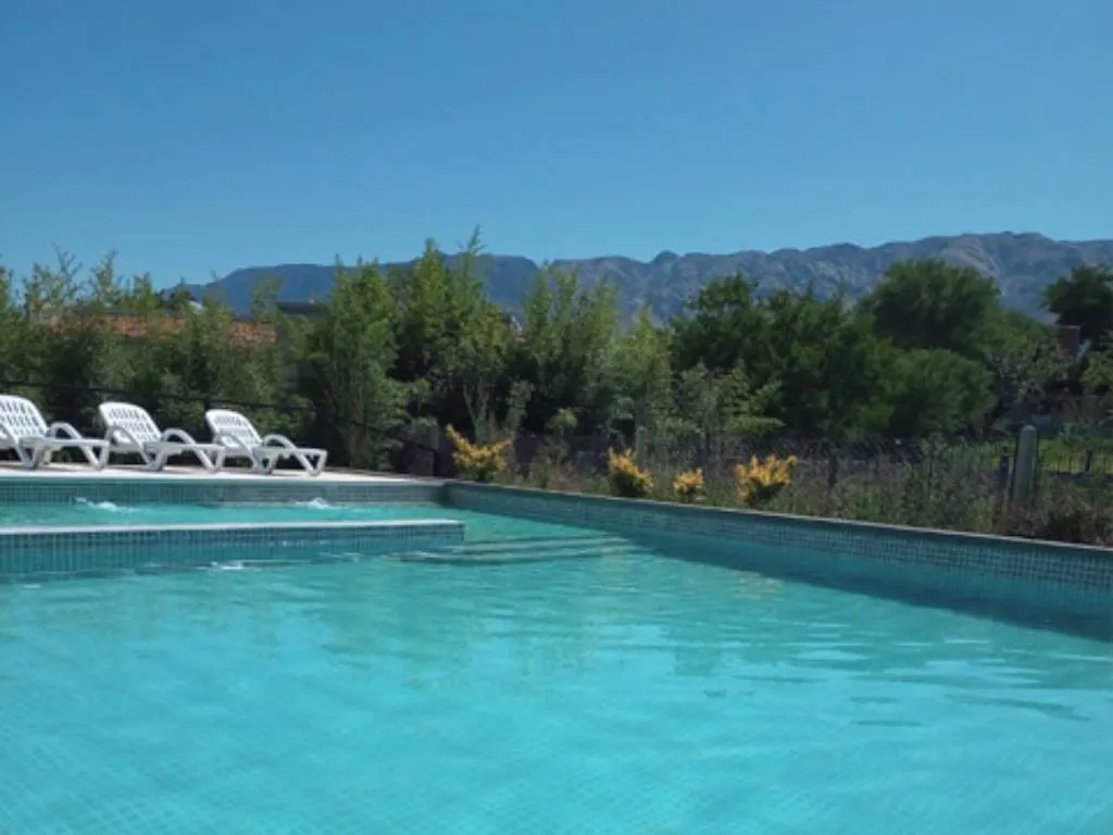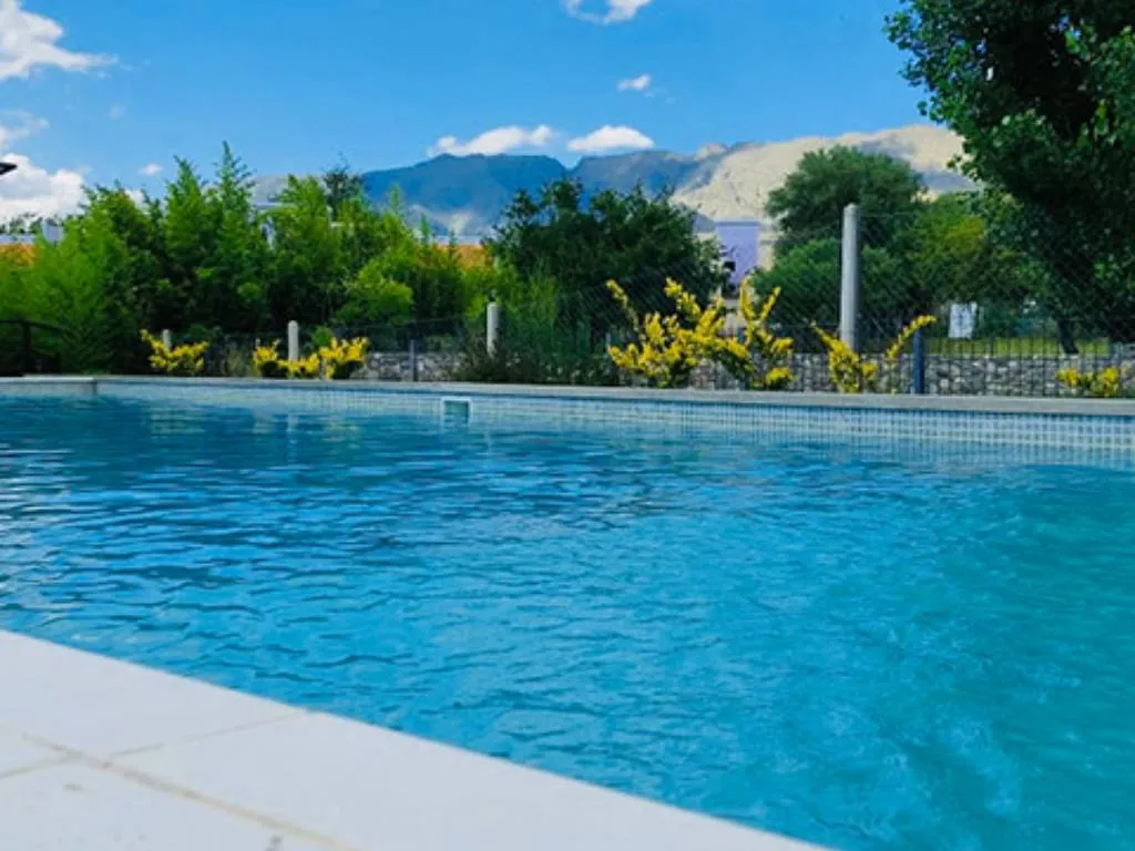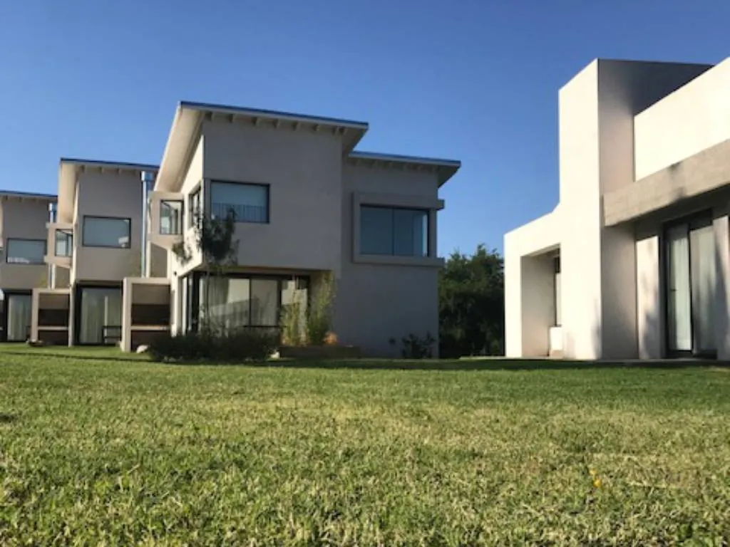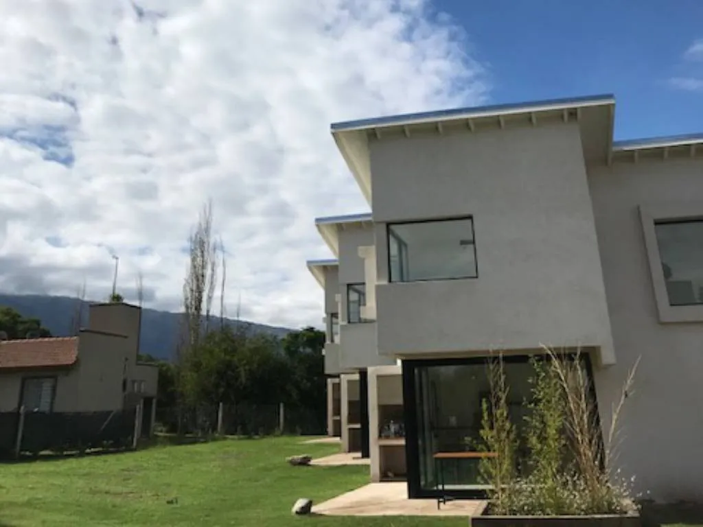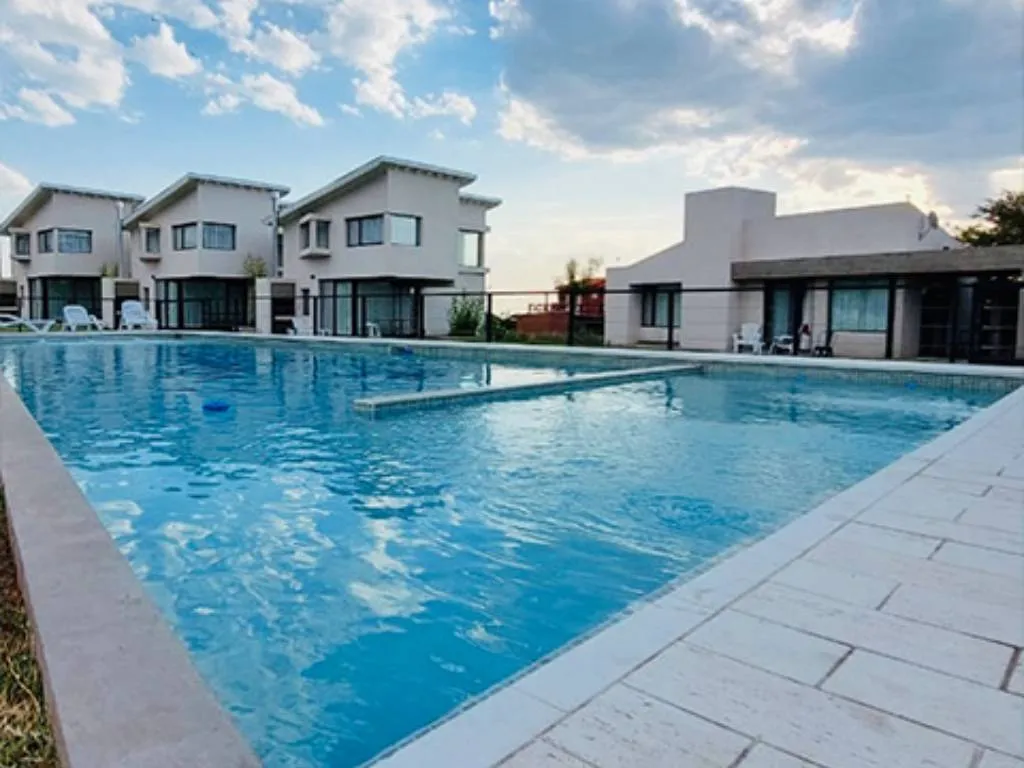 En el exterior, el complejo cuenta con una piscina con solárium, un espacio verde con juegos para niños y una parrilla, ideales para disfrutar del aire libre y del clima serrano.
